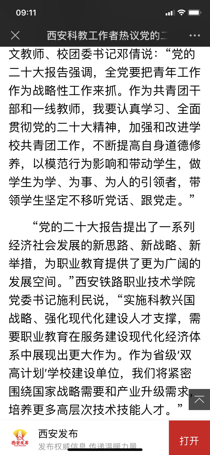 上一篇:学习强国:【二十大时光】西安科教工作者热议党的二十大报告 以奋力争先的使命感助力科教兴国战略实施