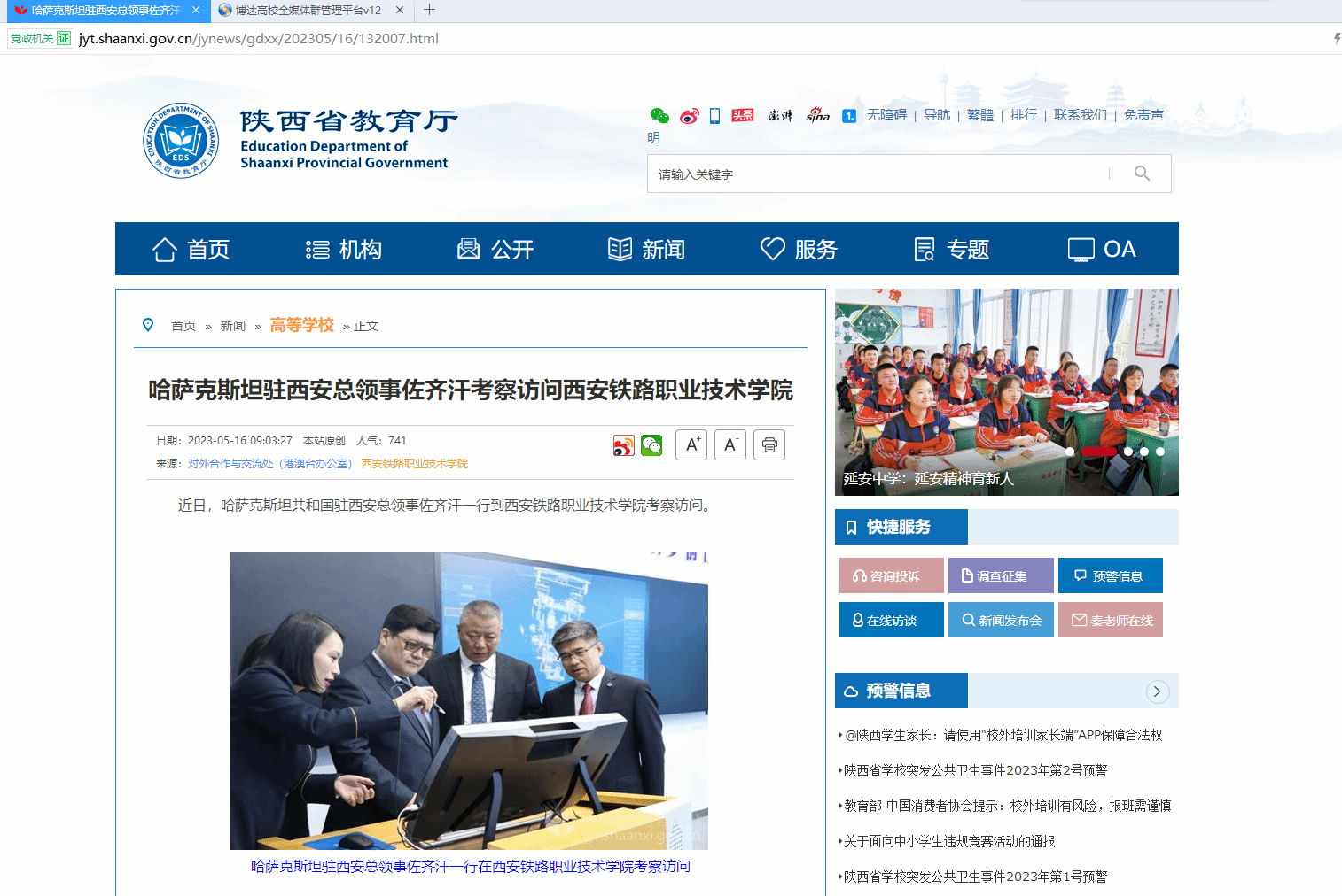 哈萨克斯坦驻西安总领事佐齐汗考察访问必赢bwin线路检测中心_高等学校_新闻_陕西省教育厅