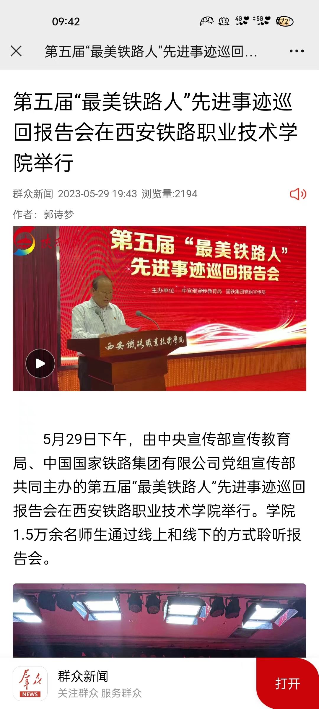 下一篇:西安发布:榜样的力量!第五届“最美铁路人”先进事迹巡回报告会在西铁院举行