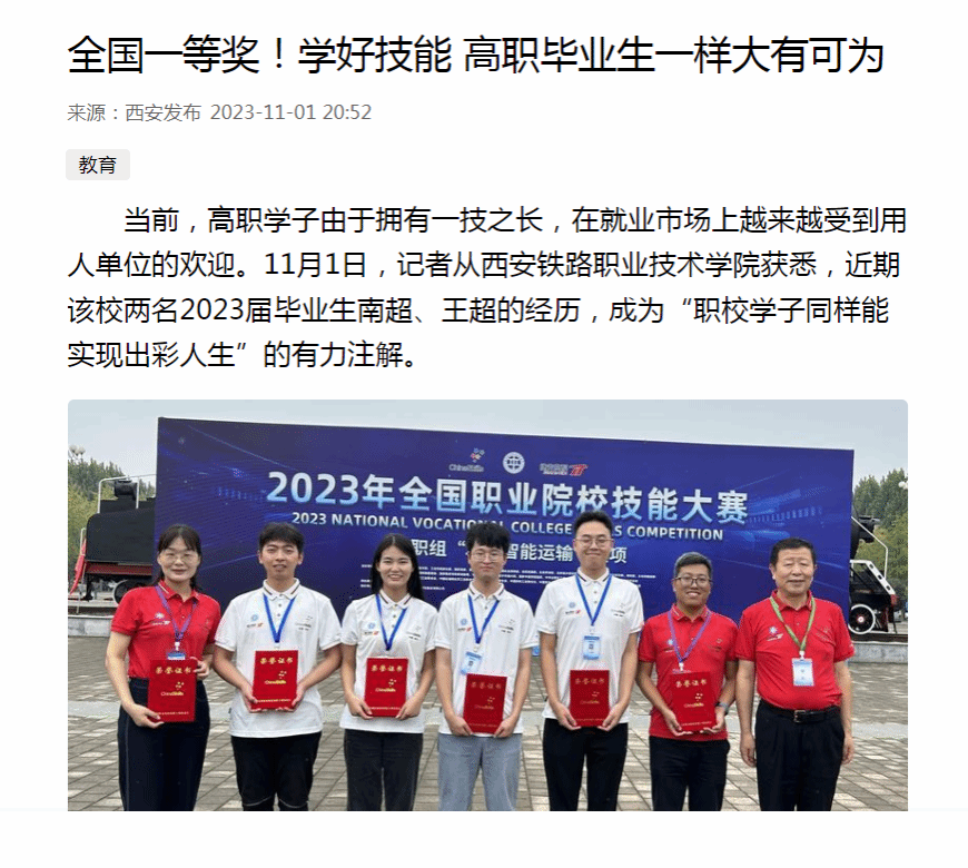 全国一等奖!学好技能 高职毕业生一样大有可为